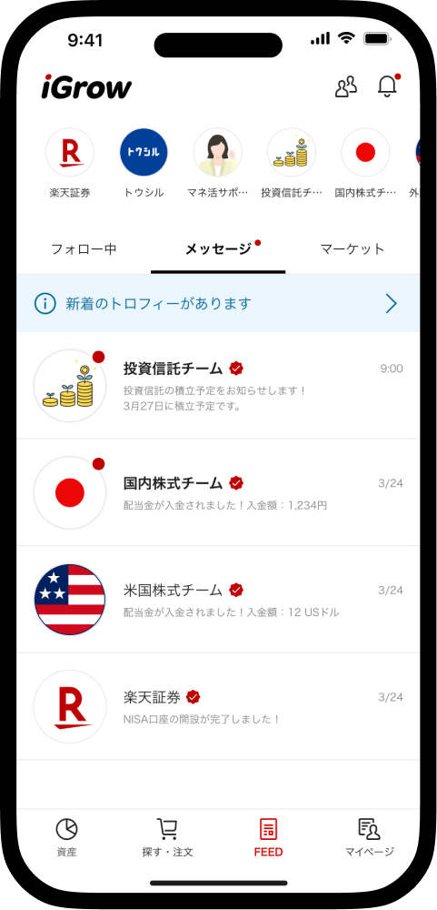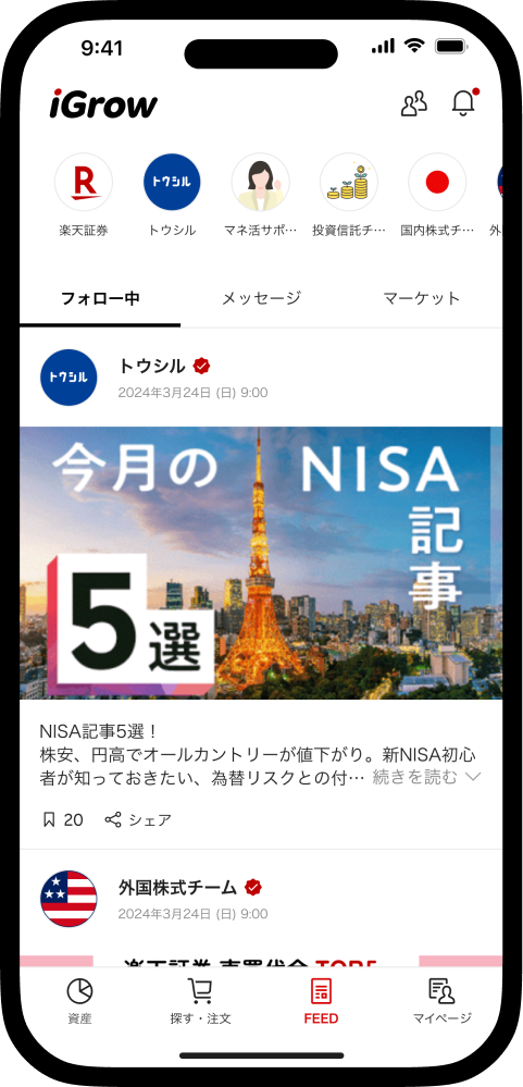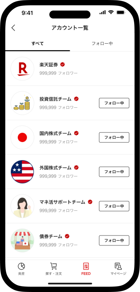 SNSのように興味のあるアカウントをフォローして、資産づくりのヒントを気軽に収集できる。