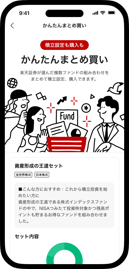 楽天証券が選んだファンドセットで初めての方でも簡単に分散投資を始められる。